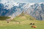 Θα ολοκληρώσουμε την σημερινή εξόρμηση με επίσκεψη στην εκκλησία της Αγ. Τριάδας κοντά στο χωρίο Γκεργκέτι. Η εκκλησία του 14ου αιώνα, χτισμένη σε υψόμετρο 2.170 μέτρων, στην πλαγιά του όρου Καζμπέκ, προσφέρει απίστευτη θέα. Λόγω της απομόνωσης της μέσα στην βουνίσια περιοχή και της ιδιαίτερη αρχιτεκτονικής της είναι ίσως το πλέον εμβληματικό αξιοθέατο της Γεωργίας.