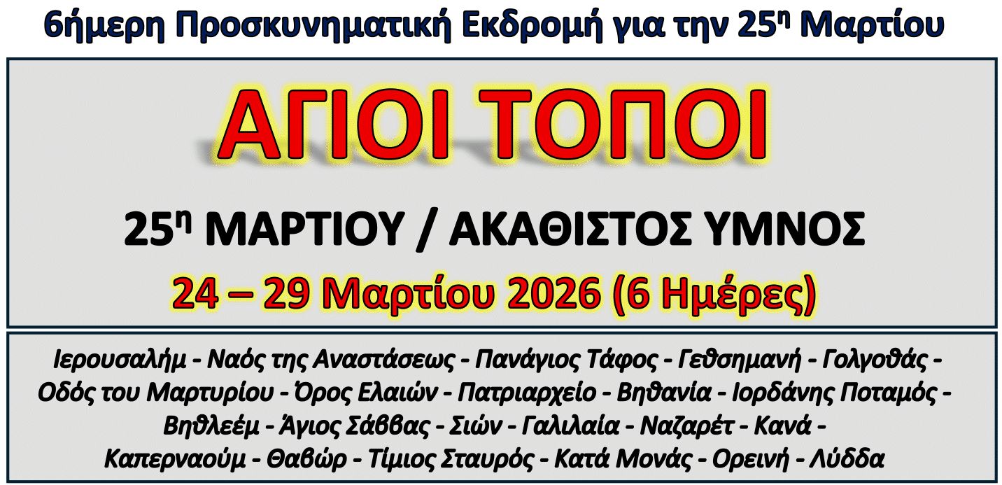 ΑΘΗΝΑ – ΙΕΡΟΣΟΛΥΜΑ – ΝΑΟΣ ΑΝΑΣΤΑΣΕΩΣ – ΠΑΝΑΓΙΟΣ ΤΑΦΟΣ