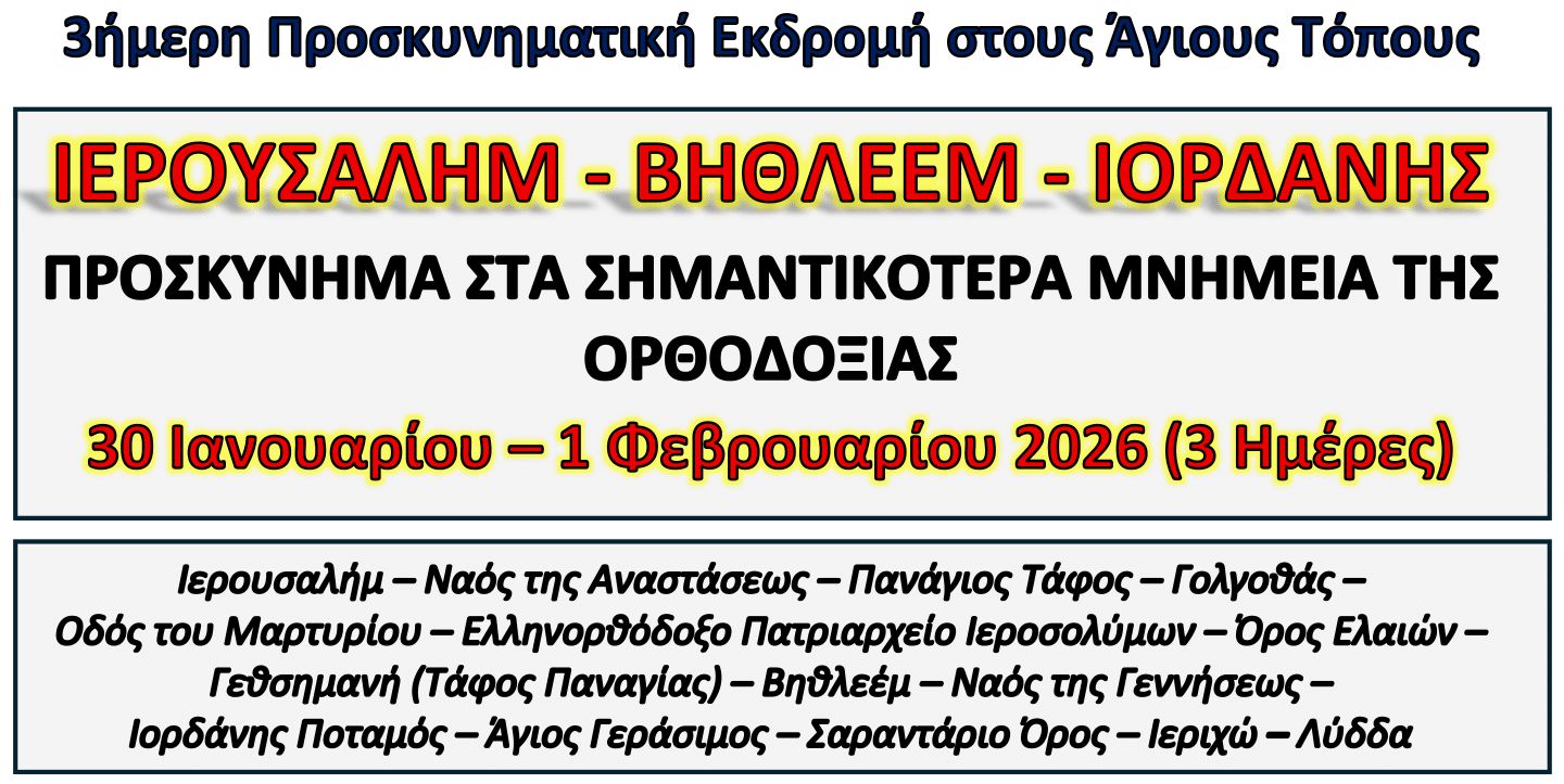 ΒΗΘΛΕΕΜ – ΙΟΡΔΑΝΗΣ ΠΟΤΑΜΟΣ – ΙΕΡΙΧΩ – ΣΑΡΑΝΤΑΡΙΟ ΟΡΟΣ – ΑΓΙΟΣ ΓΕΡΑΣΙΜΟΣ – ΟΡΟΣ ΕΛΑΙΩΝ