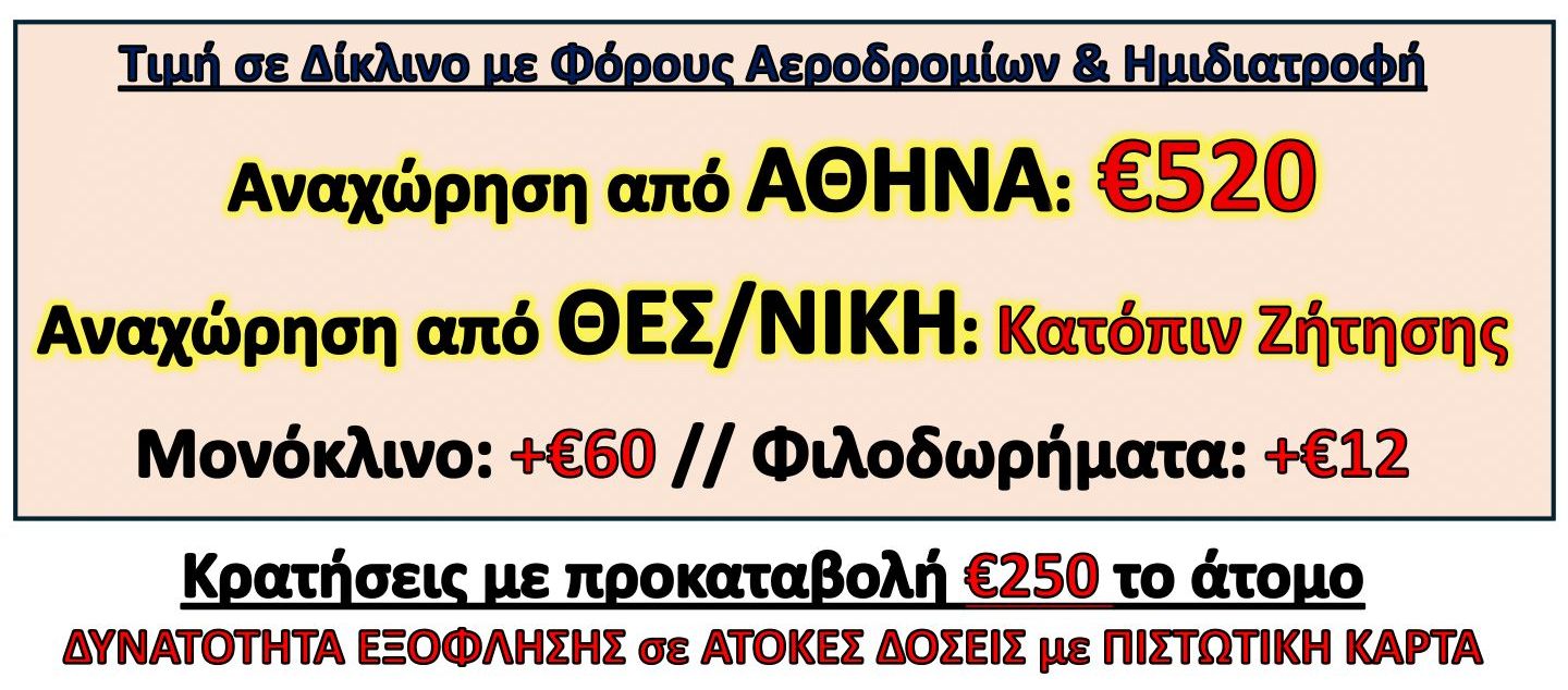 Συγκέντρωση στο γκισέ της Aegean Airlines στις 07.20 στο αεροδρόμιο Αθηνών ‘Ελευθέριος Βενιζέλος’ τσέκ-ιν και παράδοση αποσκευών.