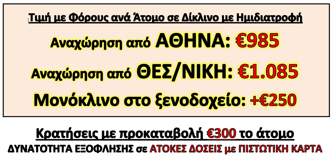 Συνάντηση με τον εκπρόσωπο του γραφείου μας στο αεροδρόμιο Ελευθέριος Βενιζέλος της Αθήνας, στις 15.00, στις αναχωρήσεις.