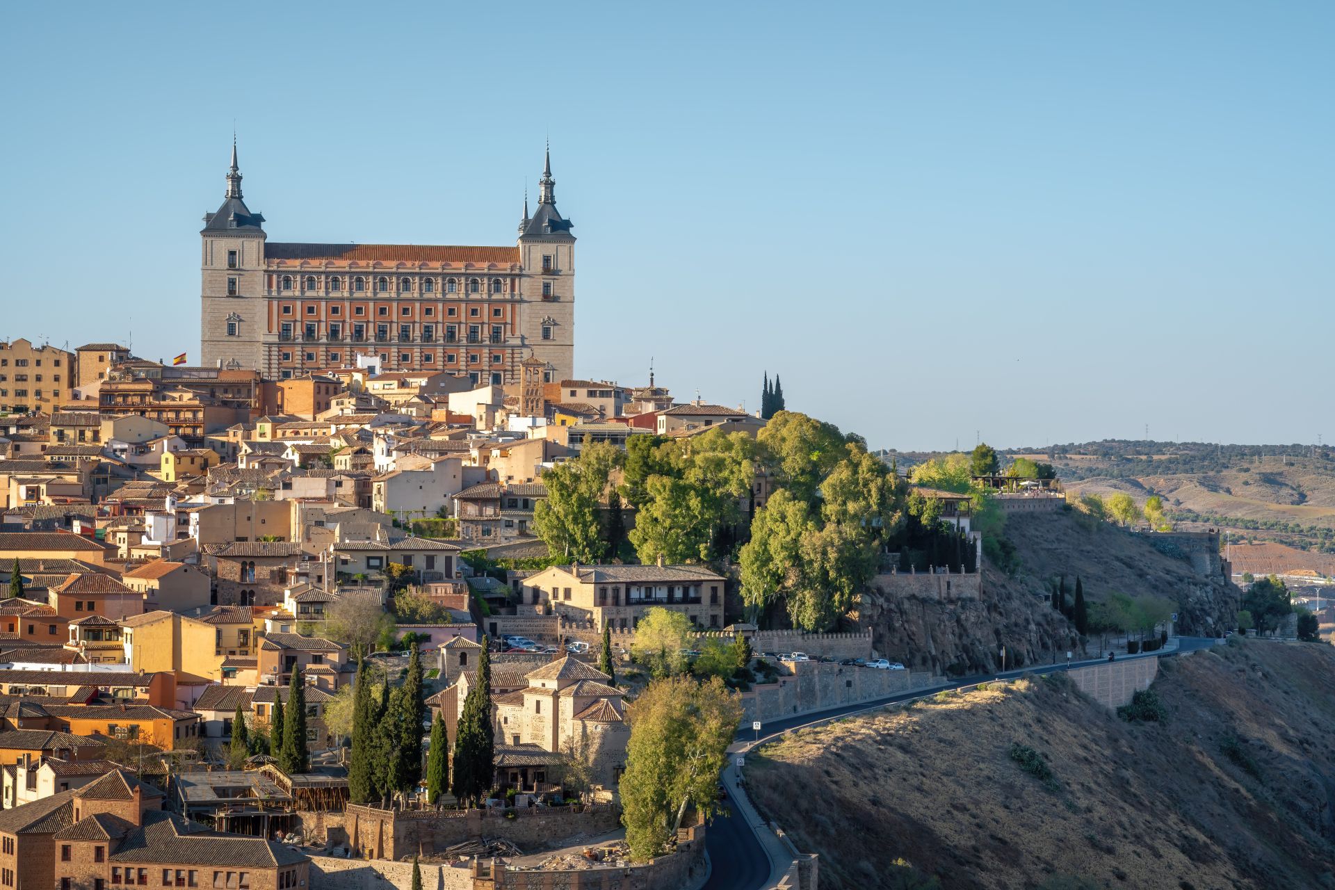 Πρωινό στο ξενοδοχείο και αναχώρηση οδικώς για το Τολέδο, μέσα από μια όμορφη διαδρομή στην κάστα της Καστίλλης – ήρεμα τοπία, απαλές καμπύλες λόφων και μικρές αγροτικές εκτάσεις που εναλλάσσονται σαν ζωγραφικός πίνακας, προετοιμάζοντας μας για την είσοδο σε μια άλλη εποχή. Πριν μπούμε στην πόλη, θα κάνουμε έναν πανοραμικό γύρο με το λεωφορείο γύρω από το Τολέδο, ακολουθώντας τη ροή του ποταμού Τάγου, ώστε να το δούμε να υψώνεται επάνω στον βράχο, με τα τείχη, τους πύργους και τις σκεπές του να σχηματίζουν ένα μοναδικό σκηνικό.
