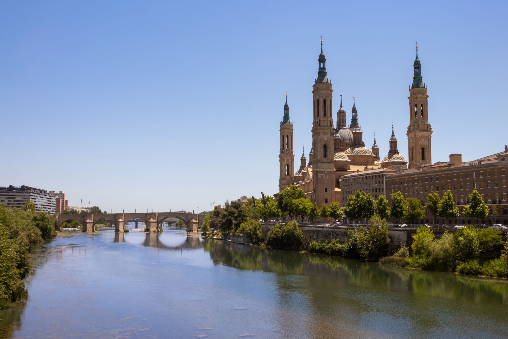 Από εκεί, μια σύντομη βόλτα θα μας φέρει στη Γέφυρα του Αγίου Ιακώβου πάνω από τον ποταμό, απ’ όπου μπορούμε να απολαύσουμε μια όμορφη πανοραμική θέα προς την πόλη και τη βασιλική, ιδανική για φωτογραφίες και ένα μικρό διάλειμμα στο βλέμμα και στη σκέψη. Στη συνέχεια θα δούμε τον Καθεδρικό Ναό La Seo, με το μνημειακό του ύφος και τα στοιχεία γοτθικού και μουντεχάρ ρυθμού, που μαρτυρούν τις αλλεπάλληλες ιστορικές περιόδους της πόλης.