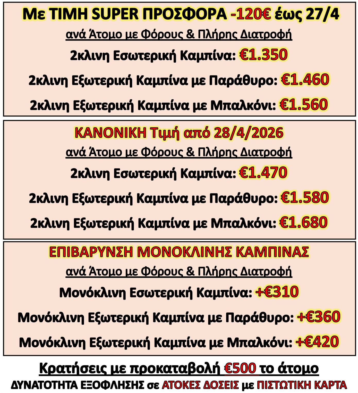 Τιμή Κατόπιν Ζήτησης και βάσει διαθεσιμότητας – Παρακαλούμε επικοινωνήστε μαζί μας.
