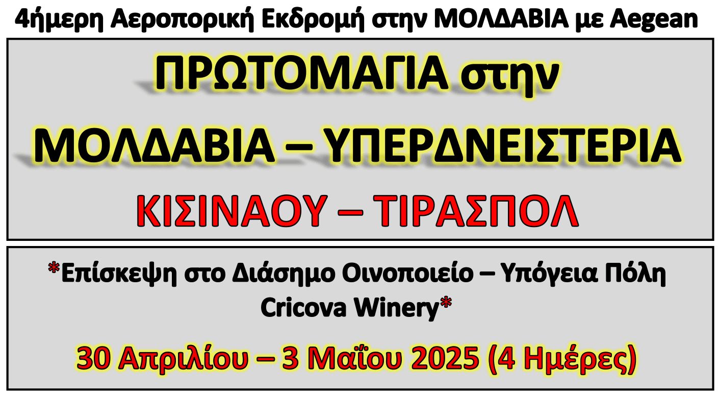 Μεσημεριανό γεύμα στο τοπικό Μολδαβικό εστιατόριο “La Placinte”. Μεταφορά στο ξενοδοχείο μας στο Κισινάου, χρόνος ελεύθερος. Διανυκτέρευση.