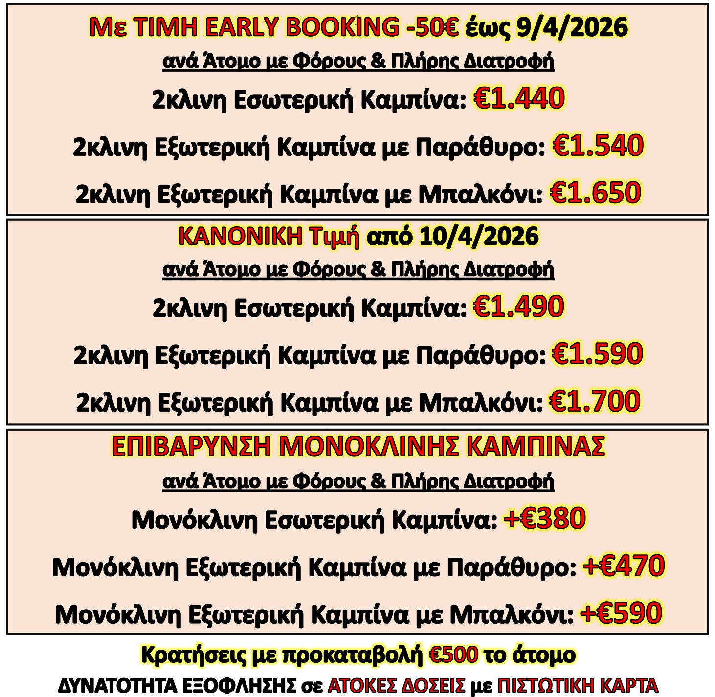 Άφιξη στις 09:00 / Αναχώρηση στις 19:00