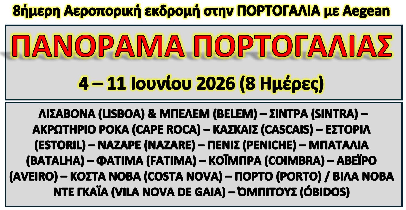 ΣΙΝΤΡΑ (SINTRA) – ΑΚΡΩΤΗΡΙΟ ΡΟΚΑ (CAPE ROCA) – ΚΑΣΚΑΪΣ (CASCAIS) – ΕΣΤΟΡΙΛ (ESTORIL) – ΝΑΖΑΡΕ (NAZARE) / ΠΕΝΙΣ (PENICHE)